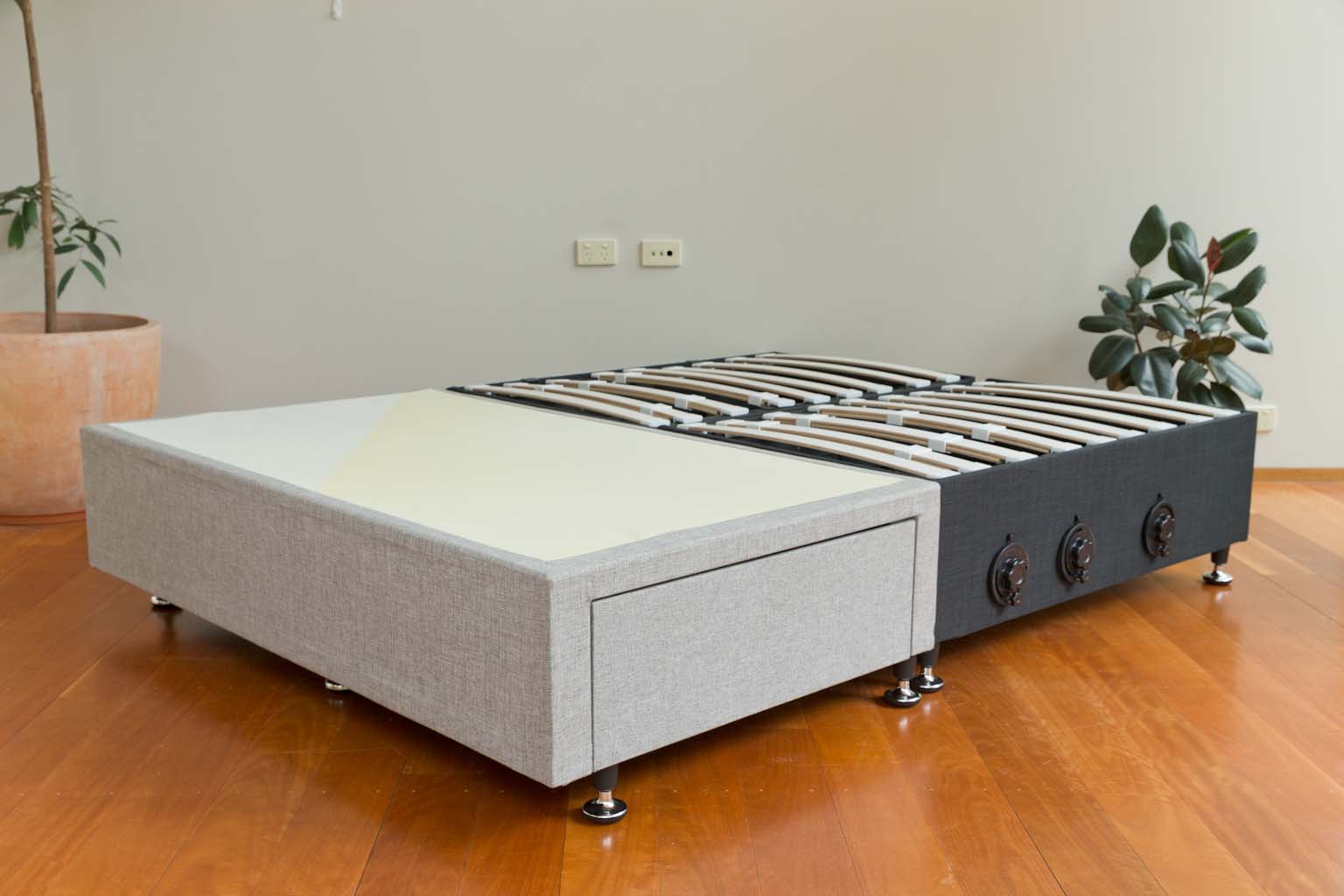 Our 3D Adjustable Pro Base offers ‘in base’ ultimate lumbar support and pressure relief at the shoulders and hips via a series of cross-posture slats that can be adjusted vertically. the Zero-Stress range of under-the-mattress adjustment systems allows you to shape the surface on which your mattress rests with millimeter precision in order for you to achieve ‘natural body alignment & support’ for maximum comfort and rest as well as improved blood flow.